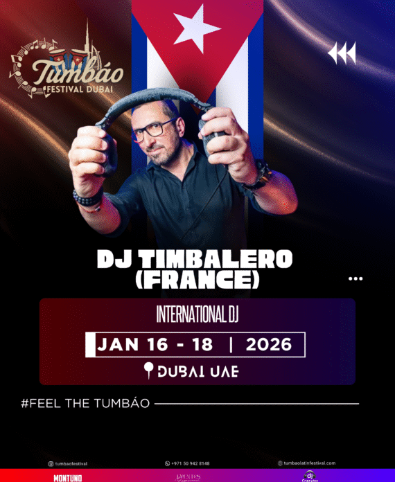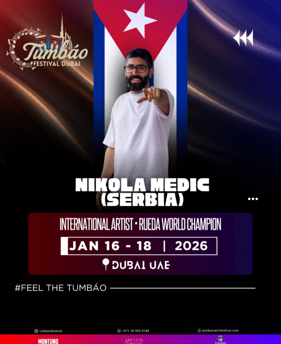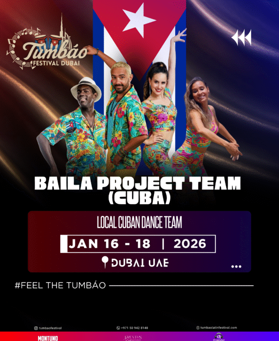 International Artists Jennyselt Galata – CubaInternational Artist Nicolo Laricchia & Alice Fraddosio (Italy)Cuban Salsa • Rumba • Afro-Cuban Movement Paolo Suárez (Peru)Reparto & Urban Latin Movement Danger Rodríguez & Marielkis Hernández (Cuba/Europe) Osmani SeguraInternational Artist • Choreographer YANET FUENTESAfro-Cuban • International Artist • Choreographer Nikola Medic (Serbia)Rueda World Champion • Festival Founder • Rueda & Cuban Salsa International DJs DJ Timbalero (France)DJs DJ Andrea Massicci (Italy) DJ Bein (Dominican Republic)Salsa Caribe • Tropical Vibes DJ Carlito Cuba (Cuba) DJ Fabio (Egypt / UAE) DJ TOM NKA Local UAE Artists LEO CHARNGA – CubaLocal Cuban Artist Baila Project Team (Cuba / UAE) Lázaro DCuba (Cuba) InstagramOUR